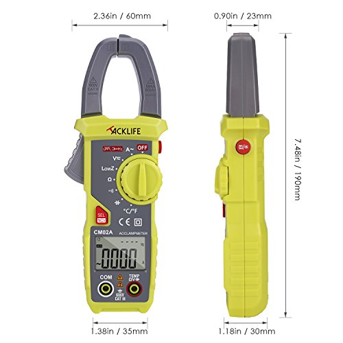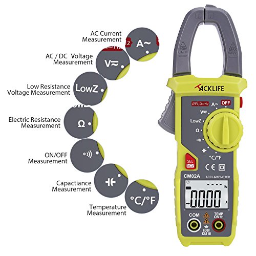 - ▲TRMS 6000 COUNTS MEASURING - Auto Ranging accurate measures AC current to 600 A, AC and DC voltage to 600V, and resistance to 6000Ω, Temperature, Continuity and Capacitance. you can troubleshoot a variety of automotive and household electrical problems accurately