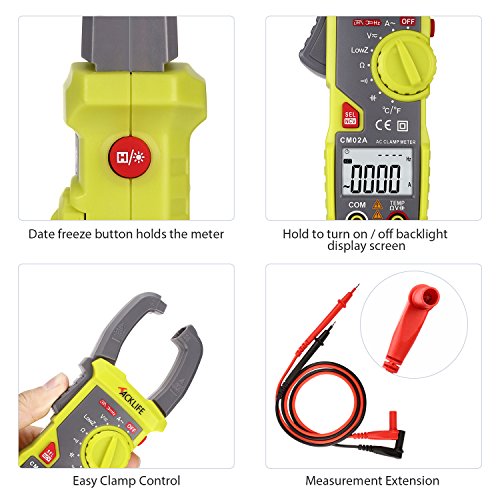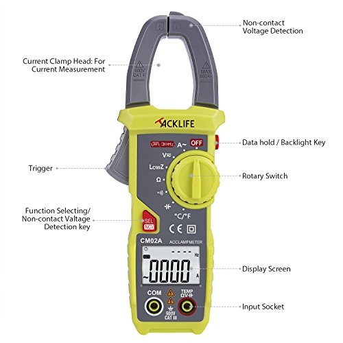Digital Clamp Meter, Tacklife CM02A 600 Amp TRMS 6000 Counts NCV with AC/DC Voltage Test Temperature Measure Auto-Ranging Multimeter