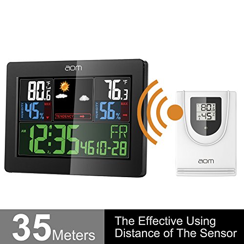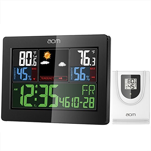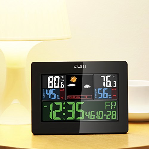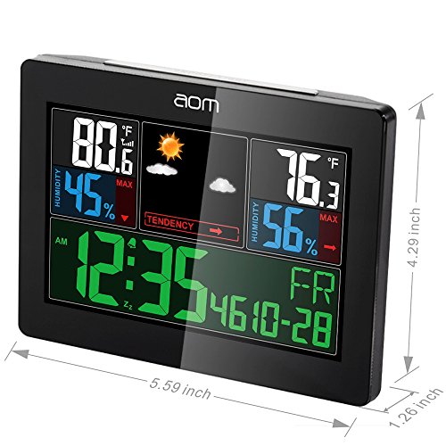 aom LCD Color Weather Station with Forecast Humidity Temperature Alarm Clock , Outdoor Sensor Vibrant color forecast with exact humidity and temperature from outdoor sensor, giving you the most climate from your location. Adjust the time and clock with 12/24 format on it. Furthermore, it has a snooze function for you when you set the time clock.