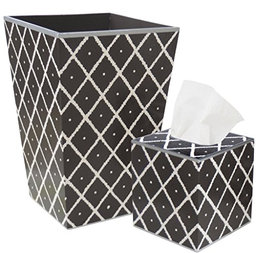 Allen G Designs Hand Painted Wooden Wastebasket and Tissue Box Set - Diamond Design
