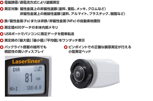 ●測定対象:磁性金属上の非磁性塗膜(塗料、亜鉛、メッキ、クロムなど)
