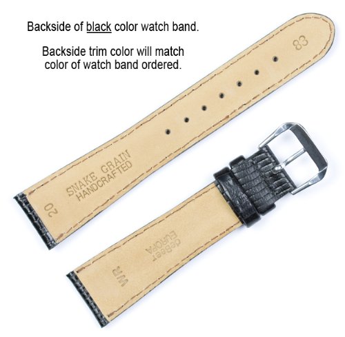 -. Feature : 20mm wide where it connects to the watch. (18mm at the buckle) / Mens standard length (7.5") / Fine Italian Leather with rich snake grain embossing. / From the deBeer Europa collection. / FREE SHIPPING!