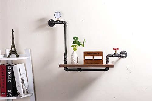 Y-Nut Loft Style Steampunk Wall Mounted Rack Shelve Organizer for Book Wine Spice, General Purpose, Wood and Metal Pipe Made