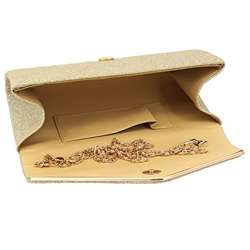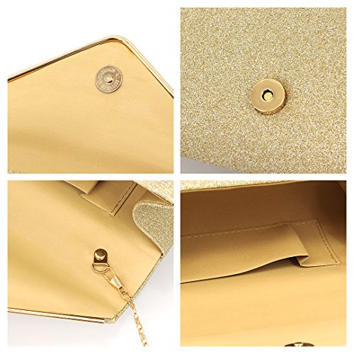 - Glittering material framed with golden-tone hardware which looks exquisite, eye-catching and stylish