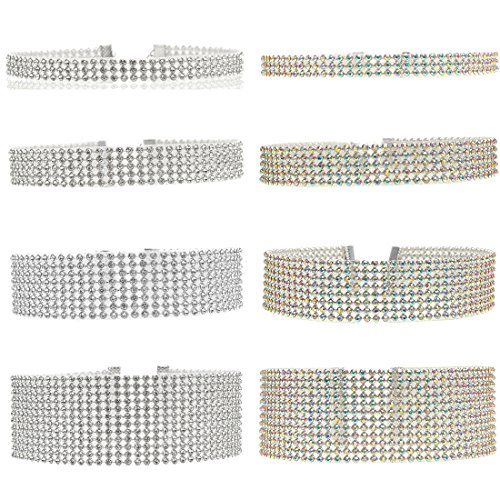 Tpocean 8 Pcs Gold Rhinestone Crystal Choker Necklace Set Women's Diamond Collar Necklace Jewelry with 3, 5, 8,12 Row Wedding Jewelry