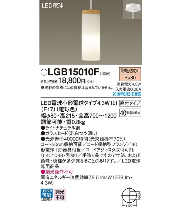 ●光源:LED電球小形電球タイプ4.3W1灯(E17)(電球色)、色温度:2700K、光源寿命40000時間(光束維持率70%)
