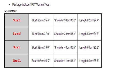 Binding : Apparel Product Description Specification: Size Details: Size:S-Bust:90cm/35.4",Shoulder:38cm/15.0",Length:62cm/24.4" Size:M-Bust:94cm/37.0",Shoulder:39cm/15.4",Length:63cm/24.8" Size:L-Bust:98cm/38.6",Shoulder:40cm/15.7",Length:64cm/25.2" Size:XL-Bust:102cm/40.2",Shoulder:41cm/16.1",Length:65cm/25.6"