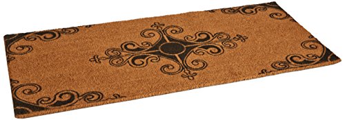 -. Feature : Environmentally friendly natural coir matting made with the husks of coconuts called coir for a sturdy and reliable surface that has little impact on the environment / Entryway mats provide great scraping action to remove excess soil and moisture from shoes to keep your floors cleaner / Available in normal or double wide door mat size and ideal for use in front of double doors or runners / French door mats with intriguing artwork, incorporating the fleur de lis for a culturally stimulating appeal / Durable material of large front door mats enables them to stand up to inclement weather for protection against moisture and foot traffic