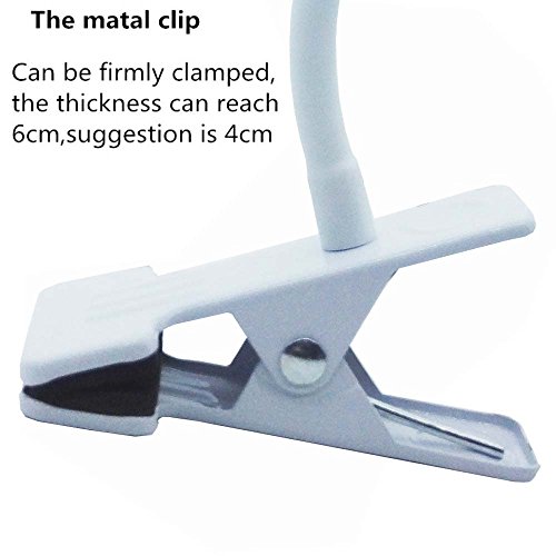 - DIY Modeling and Save Space: 180 degree beam angle is perfect with music stands, pianos, office tables, computer desks, headboards, drawing board,make up table etc.Flexible mental gooseneck (14.9inch) can be twisted in a number of shapes, and stays where you put it;With sponge inside the clamp, led clip strongly holds in place without any damage to furniture.