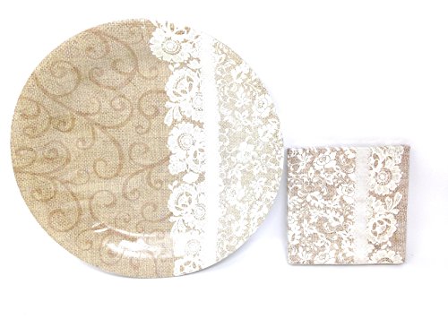 -. Title : Burlap and Lace Party Plates and Napkins Set