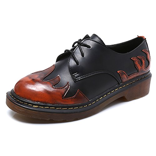 -. Title : Smilun Lady¡¯s Classic Lace-Up Shoes Red Flames Round Toe