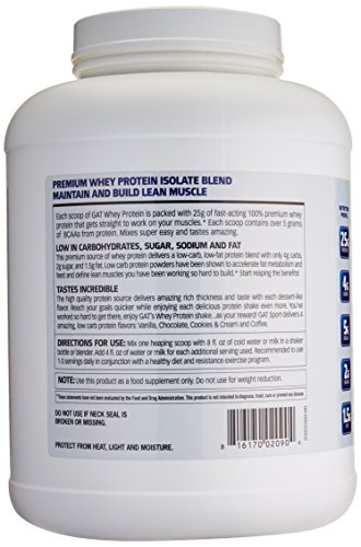 -. Binding : Health and Beauty -. Brand : GAT -. Label : GAT -. LegalDisclaimer : Other Ingredients: -. Manufacturer : GAT -. PackageQuantity : 1 -. ProductGroup : Health and Beauty -. ProductTypeName : HEALTH_PERSONAL_CARE -. Publisher : GAT -. Studio : GAT -. Title : GAT Whey Protein Isolate Blend