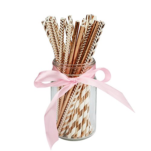 -. Brand : Bobeau-Party Supplies -. Color : Color: as in picture -. EAN : 4660029827611 -. Feature : Type: Event & Party Supplies / Material: Paper / Length: Approx. 19.5 cm / Color: as in picture / Quantity: Only the 100 pcs paper straws (Mix designs),not include others in the picture. -. Label : Bobeau -. Manufacturer : Bobeau -. PackageQuantity : 1 -. ProductGroup : Single Detail Page Misc -. ProductTypeName : MISC_OTHER -. Publisher : Bobeau -. Studio : Bobeau -. Title : Rose gold 4 designs stripe and wave foil design paper straws for birthday wedding party