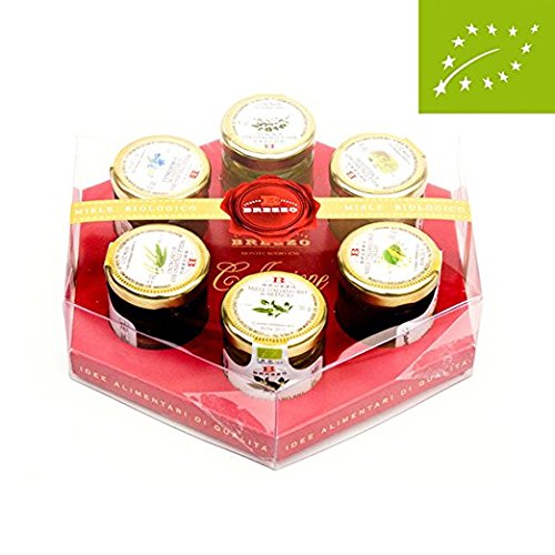 -. Feature : Italian Organic Honey Gift Box. / 6 Different Flavours: Chestnut Honey - Acacia Honey - Wildflowers Honey - Orange Blossom Honey - Lime Honey - Forest Honey / A selection to represent the finest taste experiences in Italian honey. / The ingredients are recognized as the highest standard by BioAgriCert - the certifying body. / A Refined Gift Idea.