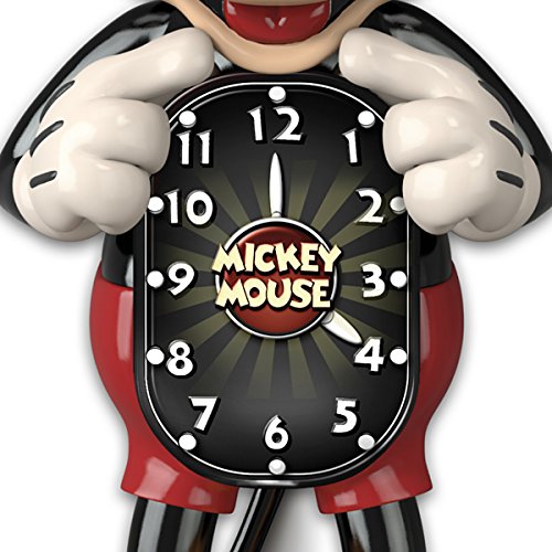 Studio : The Bradford Exchange Publisher : The Bradford Exchange Binding : Kitchen Product Description Entertaining. Engaging. And just plain fun. The same words that can be used to describe Mickey Mouse can now be applied to a premier collectible inspired by his animated character - the Disney Mickey Mouse Motion Wall Clock, a custom design available from The Bradford Exchange. Now you can bring the spunky and fun personality of Mickey Mouse created in this one-of-a-kind timepiece into your home.Impressively sized at over one-foot tall, this charming fully sculpted, hand-painted wall clock is styled just like the fun clocks from the 50s - with perpetually moving eyes and tail! A sunburst clock face with a vintage Mickey Mouse logo adds to the cool retro look and feel. This retro-inspired precision timepiece is crafted with an accurate quartz movement for dependability. So celebrate everyone's favorite mouse, Mickey Mouse, and make this clock a standout piece in your home. Strong demand is expected for this charming Mickey Mouse wall clock. So don't wait, Order now! This fine home decor is not intended for children. - The Mickey Mouse moving eyes clock features a precision quartz movement for dependability