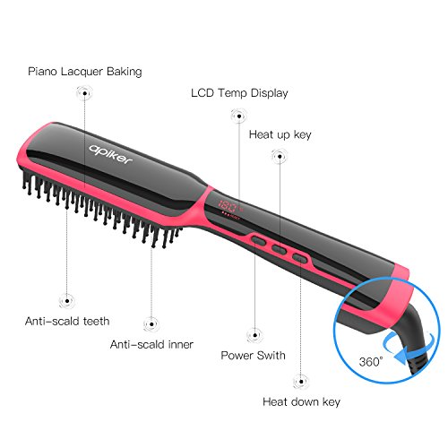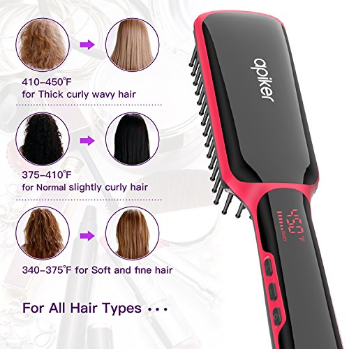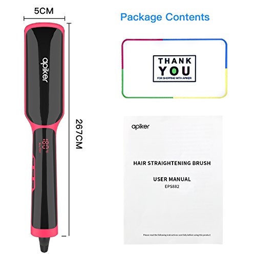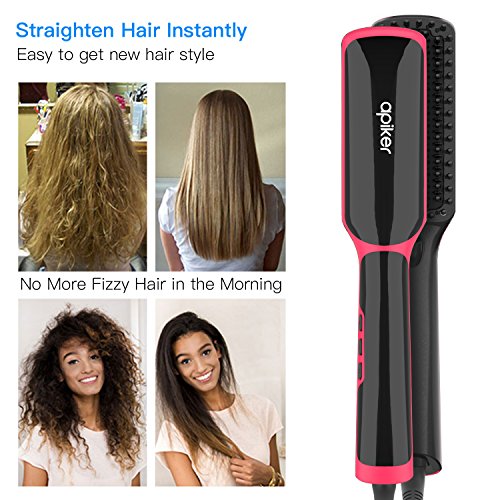 Get Fast Hair Styling Instantly: Are you always rushing in the morning with no time to straighten your hair? The Apiker Ionic Hair Straightener is the perfect solution. With the advanced PTC heating technology and denser ceramic heating comb teeth, this hair straightener brush straightens your hair in just a few minutes, saving you much time and result in natural straight, smooth and frizz-free hair.