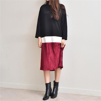 베이직한 라운드 넥에 센스있는 컬러와 소재 배색으로 멋스러움을 더한 롱 원피스를 소개해드릴께요~♡