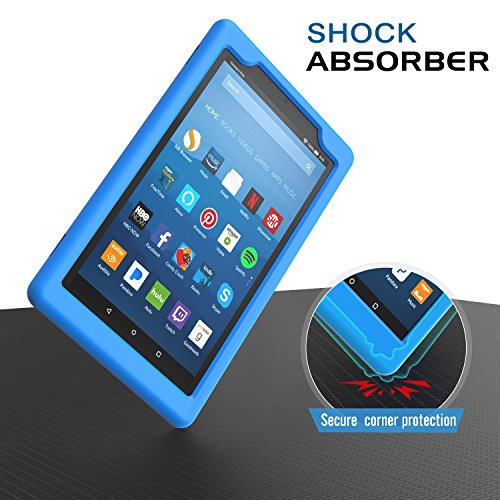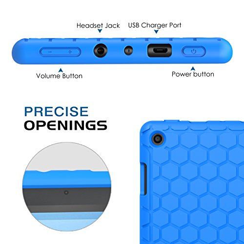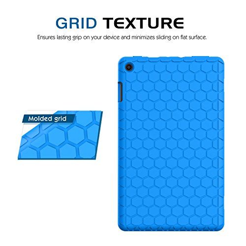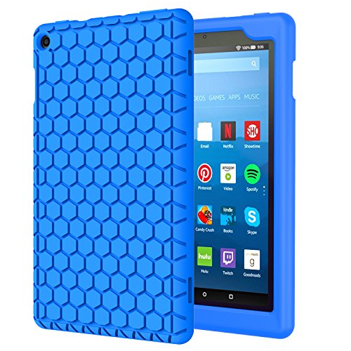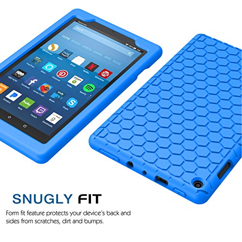 MoKo Case for All-New Amazon Fire HD 8 Tablet (7th Generation, 2017 Release Only) - [Honey Comb Series] Light Weight Shock Proof Soft Silicone Cover [Kids Friendly] for Fire HD 8, BLUE