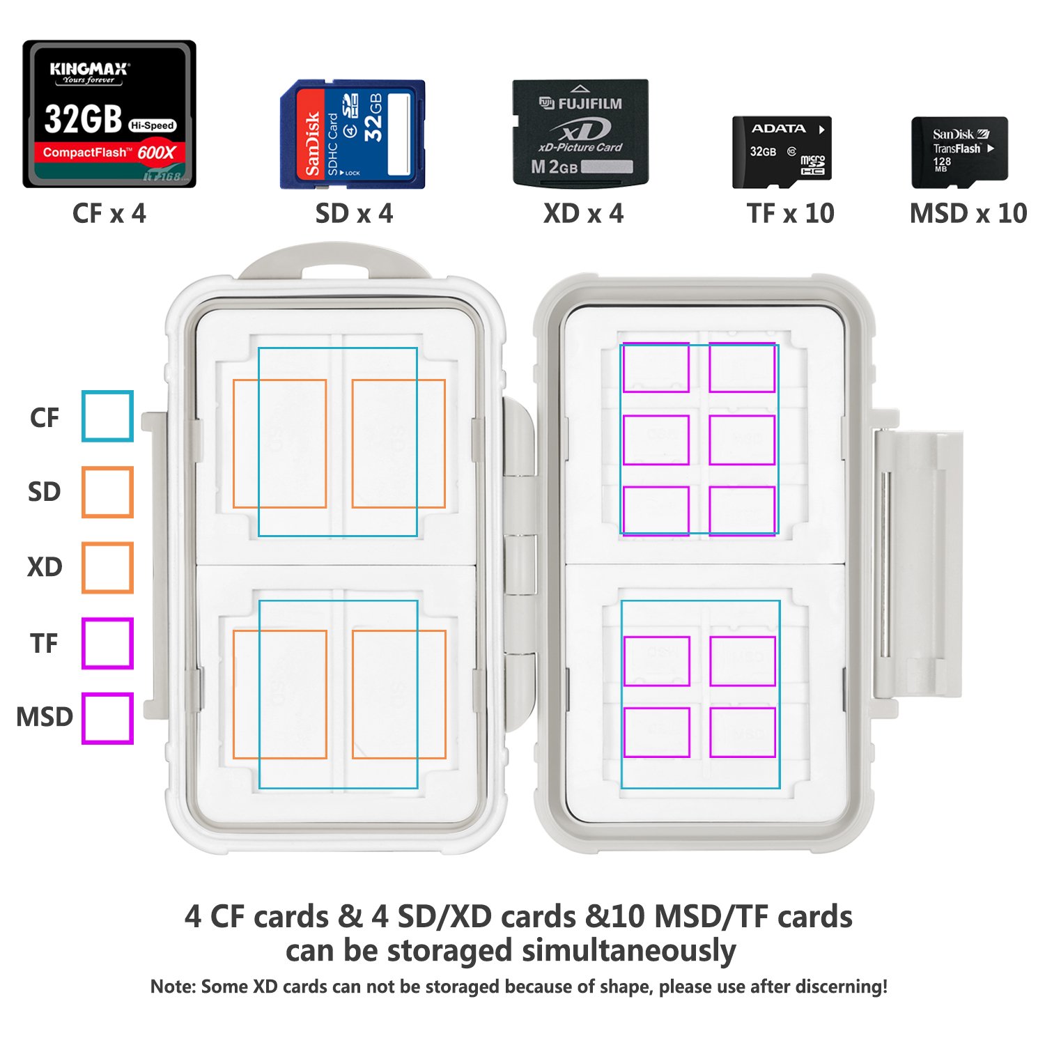 -4 SD / 4 XD / 2 CF card + 2 CF / 10 MSD / 10 TF card can be grouped together.