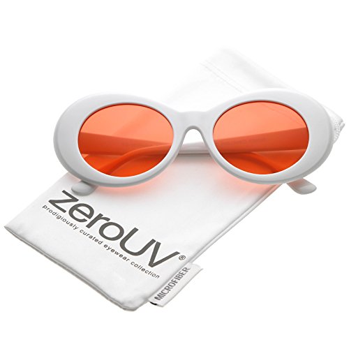 zeroUV - Bold Retro Oval Mod Thick Frame White Sunglasses Clout Goggles with Round Colored Lens 51mm