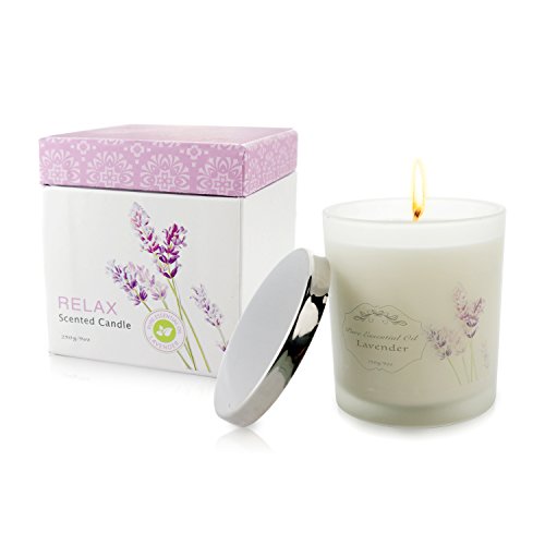 Clear and Fresh Natural Soy Wax Candle with Pure Essential Oil, Aromatheraphy Candle with Pure Essential Oil, Smokeless Candle, Huge Size Scented Candle (9oz/250g). (Lavender)