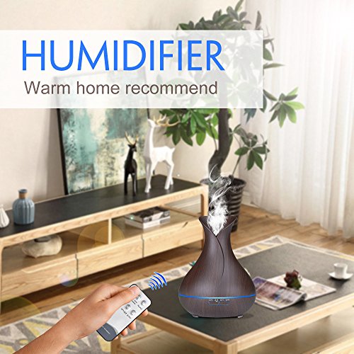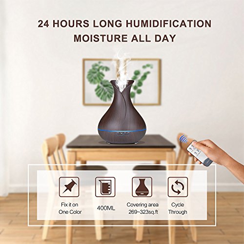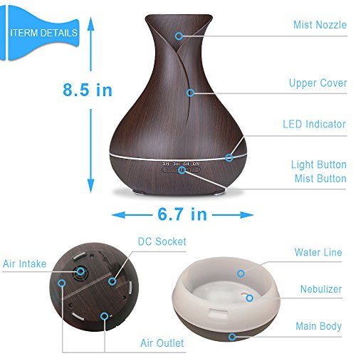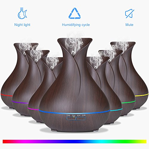 Aroma Diffuser - 500 ML Essential Oil Diffuser Electric Ultrasonic Aromatherapy Cool Mist Humidifier Air Purifier 7 Color LED light 4 time-setting Wood Grain Whisper-Quiet