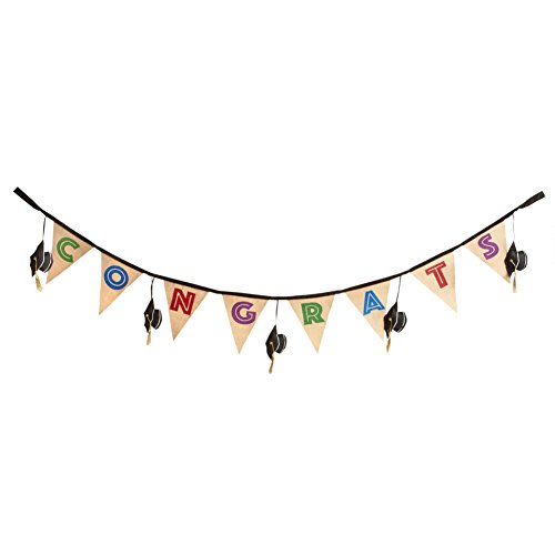 Product Description Brighten their special day with this burlap pendant banner. Colorful letters and hanging caps bring a festive touch to your graduation party. 0