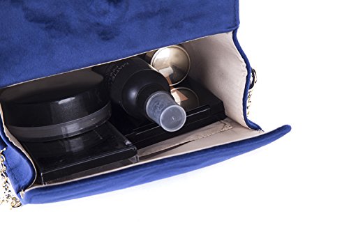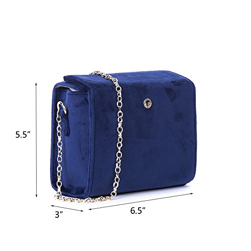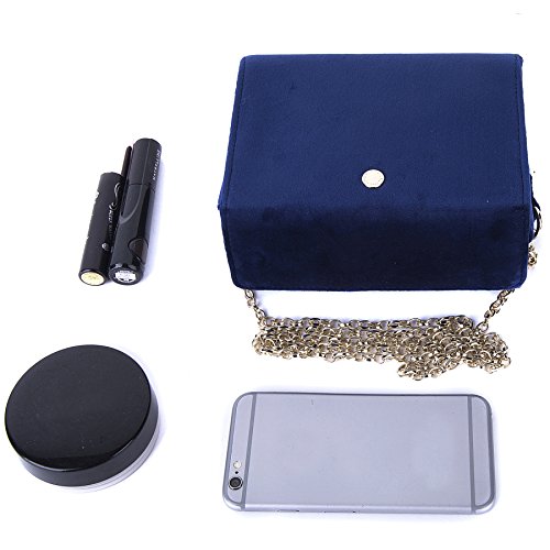 -. Brand : The Lovely Tote CO. -. Color : Blue -. Department : womens -. Feature : Wipe Clean Only / An Amazon brand / Velvet fabric / 6.5"(L) x 3"(W) x 5.5"(H) / Alternative flap cover with hidden magnetic closure. Metal chain strap. Inside open wall pocket. Logo stud on front. -. ProductGroup : Apparel -. ProductTypeName : HANDBAG -. Size : One Size -. Title : The Lovely Tote CO. Women's Chain Velvet Crossbody Purse Boxy Bag