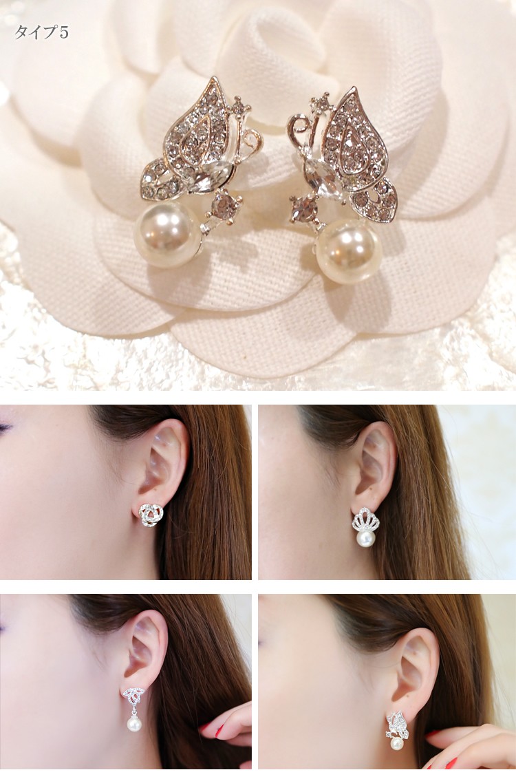 | サイズ | type1:全長約2.5cm 横約2cm パール直径1.3cm type2:全長約2.3cm 横約2.5cm type3:全長約1.5cm 横約1.5cm type4:全長約2.9cm 横約1.4cm パール直径1cm type5:全長約2.4cm 横約1.3cm パール直径8mm |