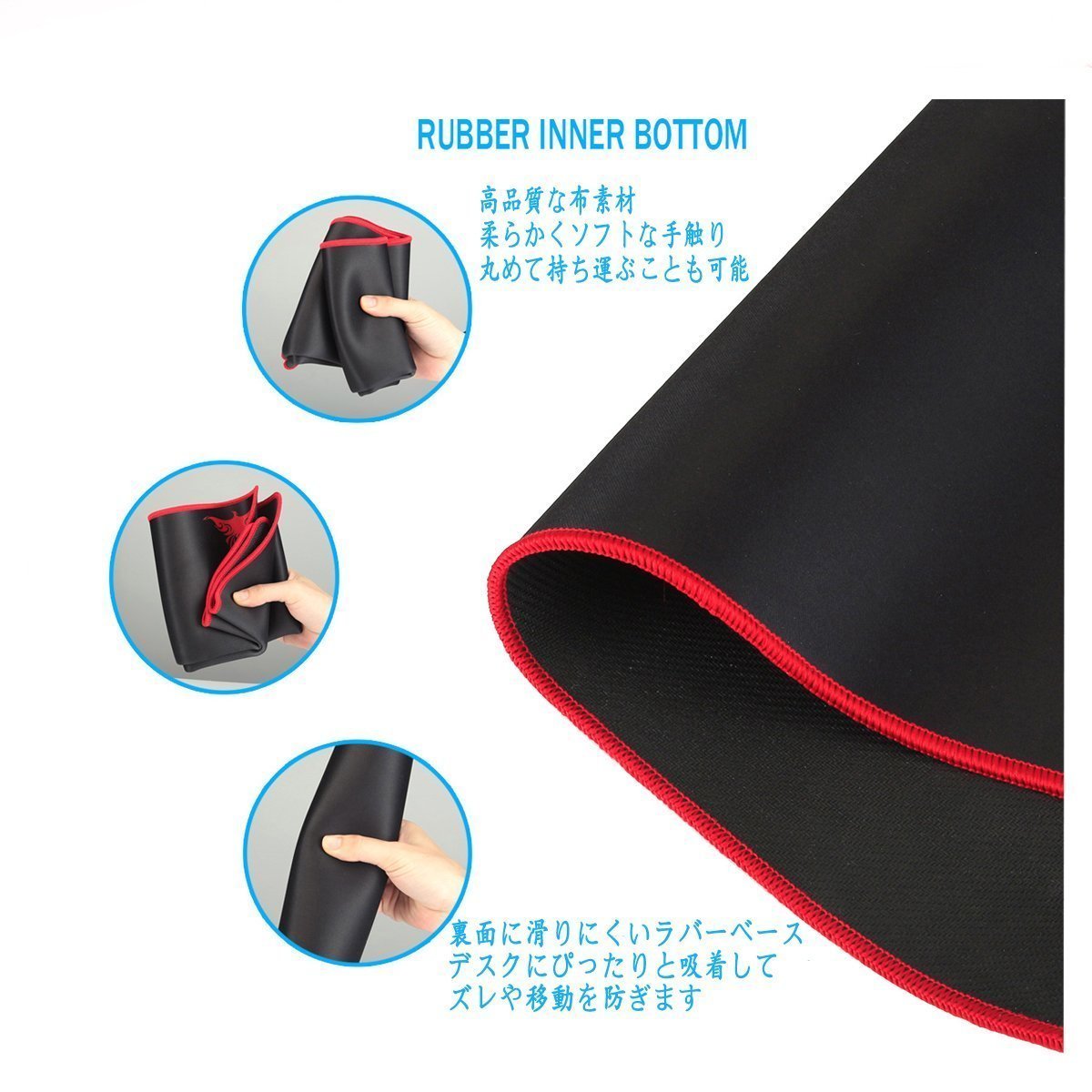 I used a small mouse pad that I bought 100 h before, but when I was doing work my hand fell off the mouse pad, my mouse sticked out and I felt very stressful. Because the price was conscientious, I bought this. It was amazingly surprising to arrive. It is quite satisfying to use widely. When not in use it can be rolled up to stand upright. Because the fabric is also strong, it seems to last long.