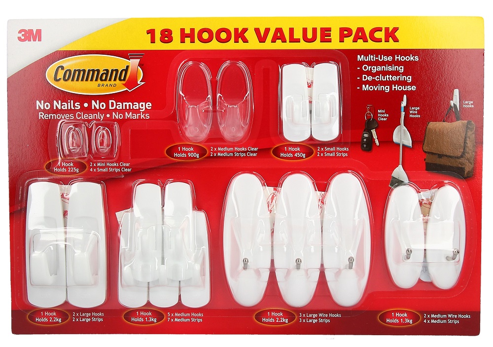 - Command hooks are damage-free solution for hanging items up in your home or office