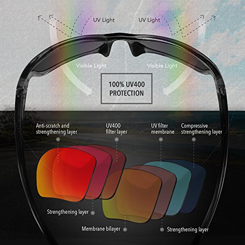 1. TAC Polarized Lenses: Cut the glare and protect your eyes with polarized lenses, perfect for any outdoor activity. 100% UVA/UVB Protection.