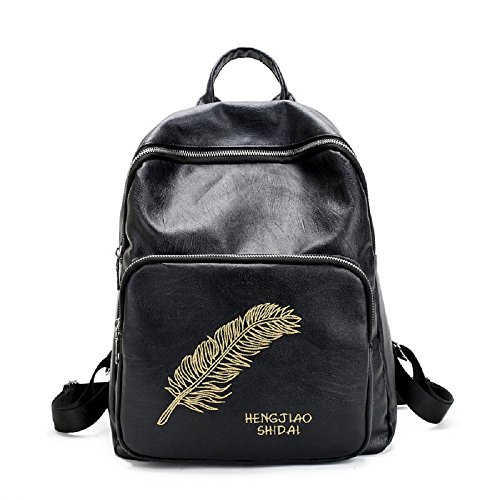 -. Feature : MATERIAL: Material Updated To Good Quality PU Leather.All The Toints are Carefully Sewn,Durable Zippers / CLOSURE: Top Zipper Closure,Special Designed Flap for Extra Safety.Pu leather,it is Rainproof,There is No Worry About The Items In The Bag Get Wet in Rainy Days. / DIMENSIONS and INTERNAL: 13.3"H x 5.9"W x 10.6"H.It is advertised as a girl's schoolbag however it is stylish and roomy enough for various ages. There is room inside for a couple books, or a ipad. I do think you could put an small tablet, a few necessities, and a wallet. / FEATURES: Golden Feather Embroidery Pattern Backpack Casual Satchel Travel Daypack.Three Different Carry Ways for Various Occasions.You Can Simply Use it As a Casual Backpack,Stylish Top Handle Bag or a Special Shoulder Bag With no Need to Remove the Strap. / Our guarantee:If you are not 100% satisfied with our product, we offer a 30-day money back guarantee and life time replacement for defective items, so what are you waiting for!