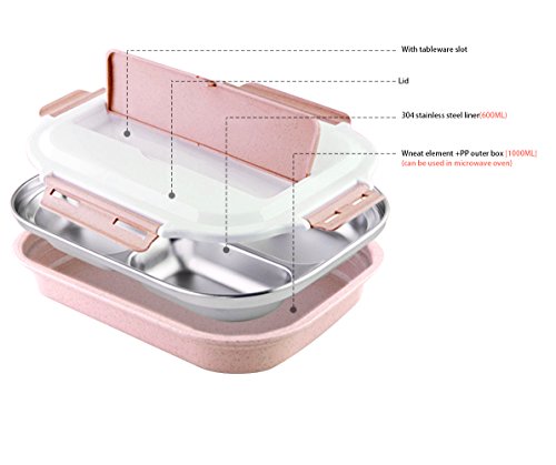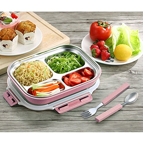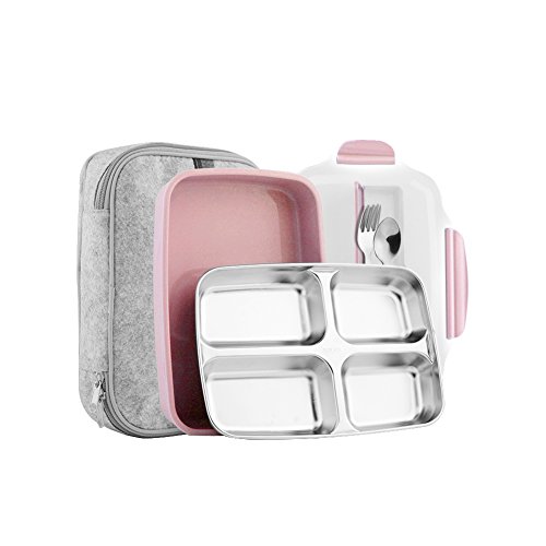 - ✔ EAT HEALTHY AND FRESH: Our lunch box consists of two different parts, 304 stainless steel tray and lead-free plastic tray. The stainless steel tray is removeable, and what the great idea is you can put some hot water to the bottom tray for heating the food or some ice to fresh the food. This is the best tray for packing healthy food to go.