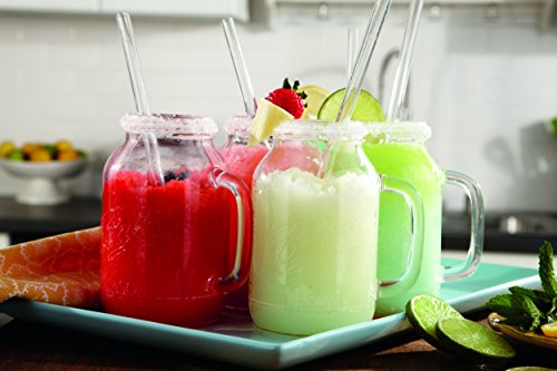It is recommended to only blend with the plastic mason jars included. Do not use glass or other mason-style jars with this blender and blade assembly. For cold drinks only.