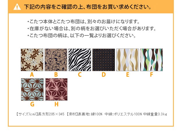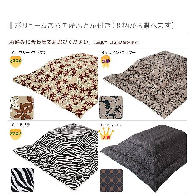 材質:天板-天然木化粧繊維板(楢)、こたつ布団(表地・裏地)-綿100%