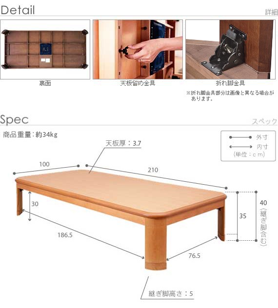 サイズ(cm):こたつ-幅210x奥行100x高さ39.5(継脚込)・約32kg