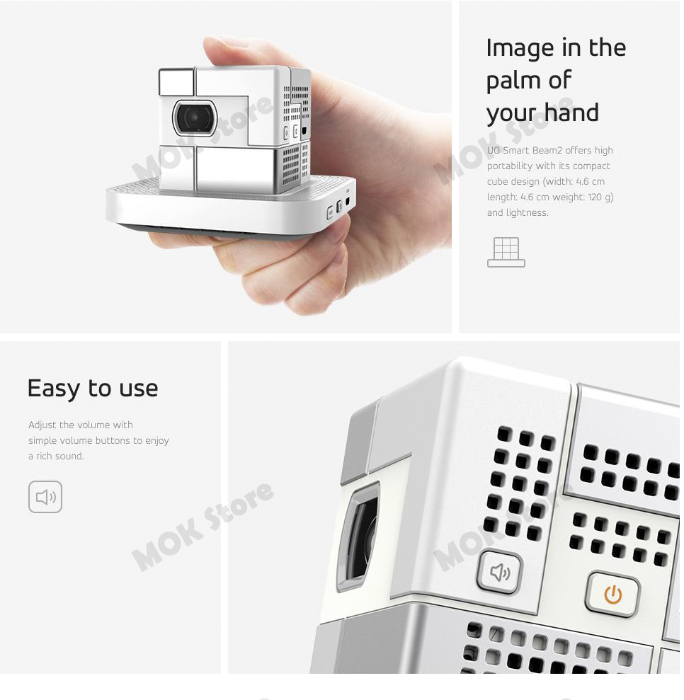SK UO Smart Beam 2 WHITE Pico Portable Mini Projector for Smartphone+Tripod