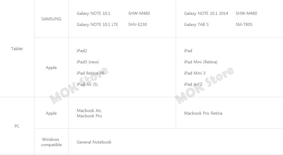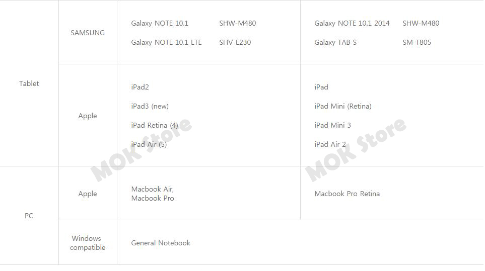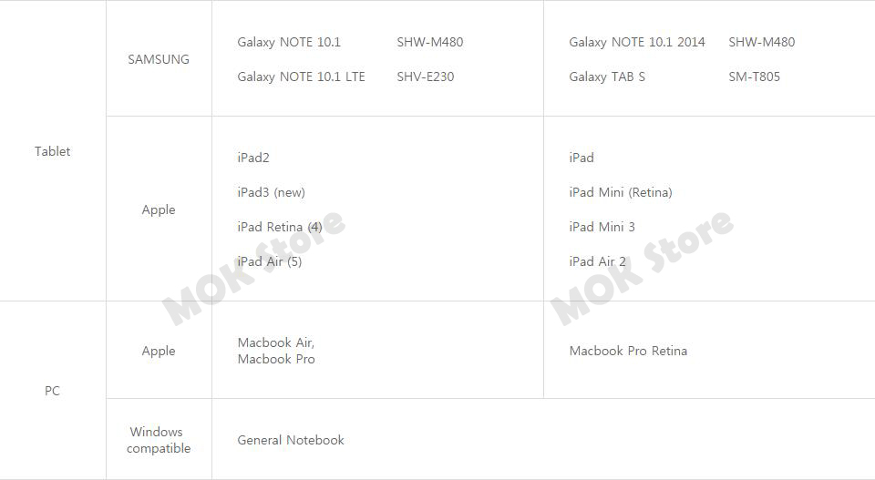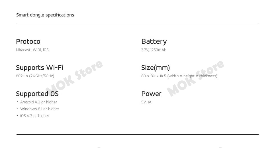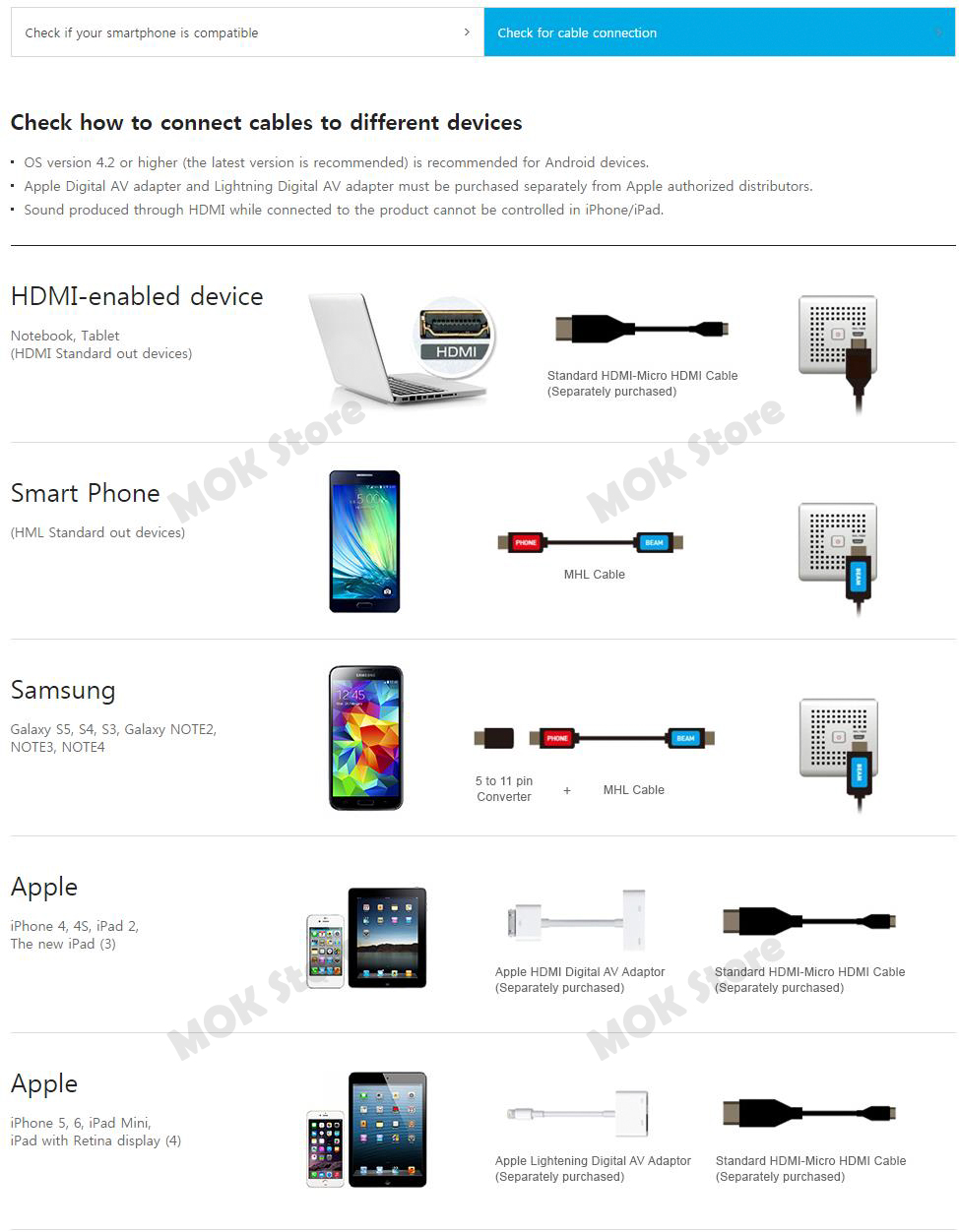 - Supported OS: Android 4.2 or higher, Window 8.1 or higher, iOS 4.3 or higher (Separate Apple AV Adaptor not included)