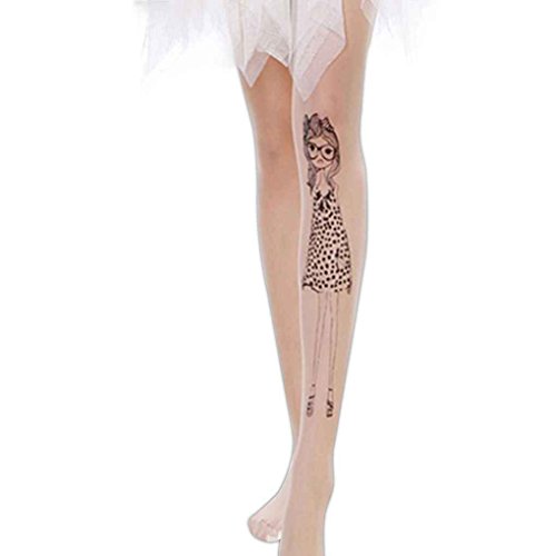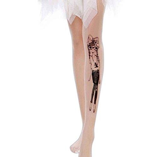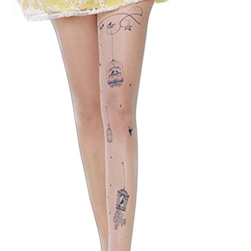 -. Title : Women's Velvet P.R.Inting Tattoo Sheer Ultrathin Stockings with Single Upshift Crotch Bobury