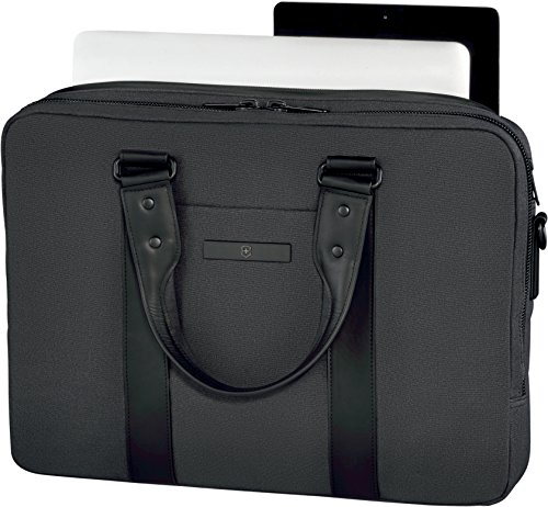 -. Binding : Apparel -. Brand : Victorinox -. Department : unisex-adult -. Feature : Padded laptop compartment holds up to a 15.6 inch (40 cm) laptop and sized to hold a 10 inch (25 cm) iPad, tablet or e-reader / Interior features a full-length zippered pocket, a multi-purpose organizational panel and padded electronics pockets, while exterior organization includes a front stash pocket and rear zippered pocket / Removable, adjustable shoulder strap / Earth-friendly nuwa exterior fabric with 100 percent genuine napa leather accents / 16.5 x 12.25 x 3.75 -. Label : Victorinox Travel Gear -. Manufacturer : Victorinox Travel Gear -. Model : 600703 -. PackageQuantity : 1 -. ProductGroup : Apparel -. ProductTypeName : LAGE -. Publisher : Victorinox Travel Gear -. Studio : Victorinox Travel Gear -. Title : Victorinox Architecture Urban 15 Inch Bodmer
