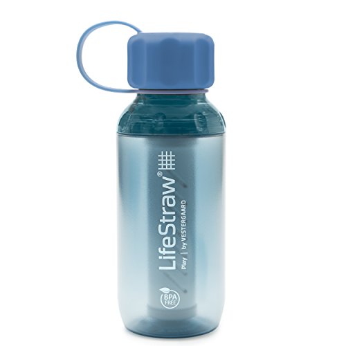 The LifeStraw Play Kids’ Water Filter Bottle with 2-Stage Integrated Filter Straw is the first water filter bottle designed especially for children. Kid-sized, leakproof bottle measures 2.5 x 7 inches, holds 10 ounces of water, and weighs 3.8 ounces, making it easy for smaller hands to use and carry at home, school, or team sports practice, as well as during outdoor activities and travel. It’s easy to fill the bottle by scooping water from lakes, rivers, streams, or contaminated urban water sources. And kids don’t need to know or do anything special to make the filter work; filtration occurs while water is sipped through the 2-stage integrated filter straw. The first stage of filtration features a replaceable hollow fiber membrane microbiological filter which filters to 0.2 microns, and removes 99.999999 percent of waterborne bacteria, and 99.999 percent of waterborne protozoan parasites, from up to 1,000 gallons (4,000 liters) of water. The second stage of filtration puts water through a replaceable activated carbon capsule, which reduces organic chemical matter (pesticides, herbicides, VOCs), exceeds the NSF-42 standard for chlorine reduction, and improves taste for up to 26 gallons (100 liters) of water. Durable, safe, and easy to clean, the bottle is manufactured from FDA approved materials, including food-grade silicone, and BPA and BPO-free Triton. Each bottle includes a choice of themed personalization discs which can be affixed to the lid. The LifeStraw Play Kids’ Water Filter Bottle is an easy and reliable way to ensure access to clean and safe drinking water at home, school, while traveling or outdoors, and in emergency situations. For each LifeStraw purchased, one child in a developing community receives safe drinking water for an entire school year.