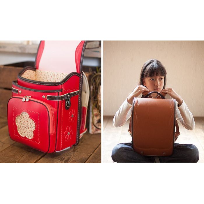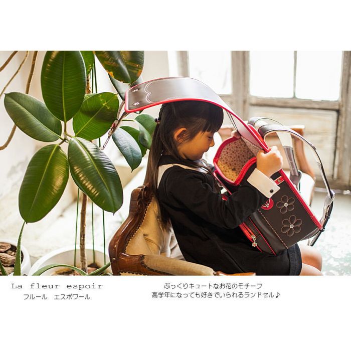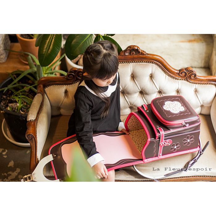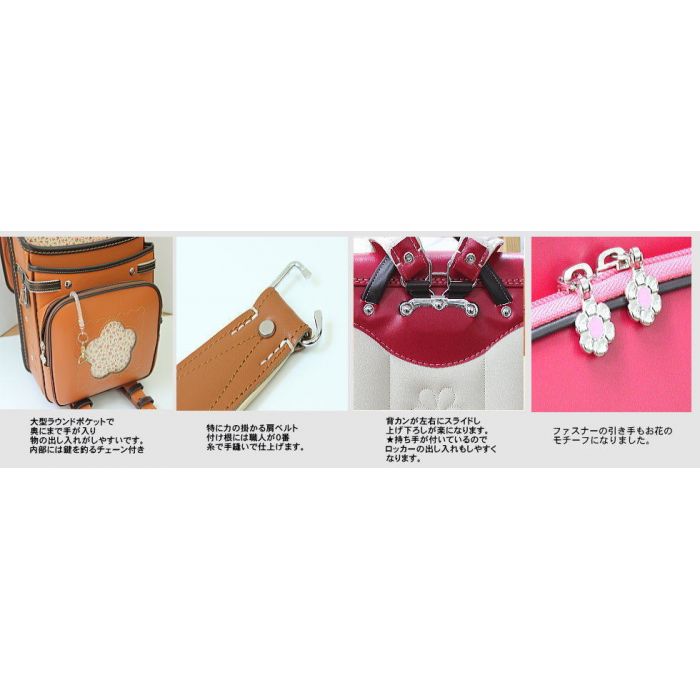란도셀 소녀 2017 일본제 수작업 공방 인기 투 톤 컬러 꽃의 란도셀 손잡이 부착 대형 라운드 포켓 호리에 가방
