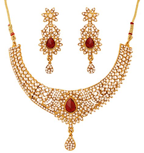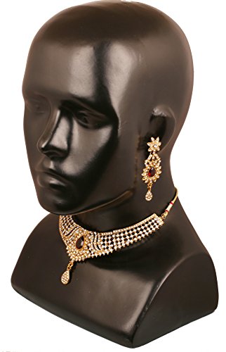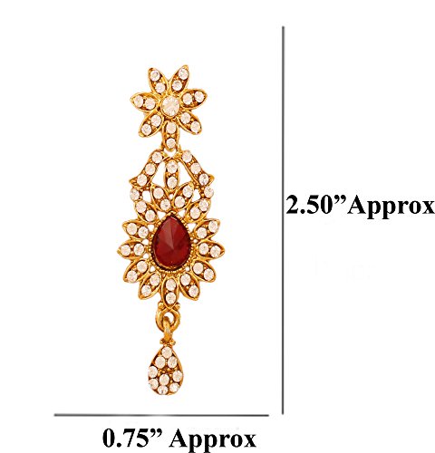 -. Feature : BRAND : Touchstone is the Premium Fashion Jewelry Brand Of India since 20 years. They have been recreating the exquisite treasure of Indian Heritage Jewelry and retailing across India. Now available in the U.S.A. at your doorstep. PACKAGING In Branded Box perfect for gifting. Extra stones and Ear push. / OCCASION Will add luster when worn for a wedding, engagement, party, prom and any special occasion. Will enhance special days like Christmas, Birthdays, Anniversaries, Valentine's Day, and Mother's Day. A Beautiful & Memorable Gift for all occasions. / SPECIFICATIONS : Necklace circumference 6 inches with adjustable/extendable soft tassel. Earring weight (single) 7 gms. Earring length 2.50 inches. 0.75 inch. "This is in a special dark gold plating to recreate the look of antique jewelry". / MATERIAL & TECHNIQUE : Stainless steel Ear Posts. Special Long lasting Plating with Lacquer finish. Recreates Studded Diamond Jewelry. Made of Long lasting Alloy Metal and good quality white Austrian crystals diamonds Rhinestone and faceted pear shape candy red faux ruby. Hand Finished / 100% RISK FREE PURCHASE; Money Back if not delighted; Enjoy Long lasting plating, handcrafted finish and attention to detail.
