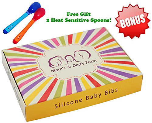 -. Binding : Baby Product -. Brand : Mom's & Dad's Team -. Department : baby-girls -. Feature : BABY BIB WITH WIDE POCKET. Baby wears silicone bib and does not feel it. Soft bib gently wraps around baby's neck, and does not irritate the skin. Waterproof bib has a large pocket for crumbs. / 100% SAFETY & HIGH QUALITY. Organic baby bibs are made of FDA-approved Food Grade Silicone. Waterproof insulated bibs are free of BPA and other nasty toxins. / EASY TO CLEAN & FAST-DRYING. Baby bibs waterproof are easy to care - you just need to wash toddler bibs with warm soapy water and rinse. Feeding bibs may also be washed on the top shelf of dishwasher. / EASY TO TRAVEL & EASY TO STORE. Pocket bib that catches food, easily folds into a roll. Infant bib easily stored on the shelf. Roll up bib compactly fits in a diaper bag. Waterproof bib is a must-have for traveling parents. / BEST BABY GIFTS. With our baby gift sets, every mom-to-be will want you at their baby showers. It is one of the best baby shower ideas for new moms. Baby bibs set allows you to wear two kids at once. -. PackageQuantity : 2 -. ProductGroup : Baby Product -. ProductTypeName : BABY_PRODUCT -. Title : Soft Silicone Baby Bib With Pocket - Best Waterproof Toddler Bib - For Girls & Boys - Easy to Clean - BPA Free - Bonus - 2 Heat Sensitive Spoons - 2 Pack Bibs for Feeding …