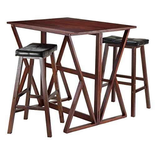 -. Title : Winsome Trading Harrington 3 Piece Counter Height Dining Table Set with 29 in. Saddle Seat Stools