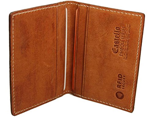 -. Binding : Apparel -. Brand : Castello -. Color : Saddle Brown -. Department : mens -. EAN : 0000018229653 -. Feature : Vacchetta is an Italian leather, which is tanned using extracts from Chestnut and Argentinean Quebracho trees and various other plants. This process creates leather that has firmness and strength. Each wallet has been individually rubbed with a cloth to establish a beautiful patina. Overtime the leather will soften and develope a nice supple feel. / This Castello wallet has an advanced material, which blocks RFID signals and secures valuable P.R.Ivate information stored on your RFID chipped credit card from unauthorized scans. / 4 credit card slots / Boxed / Dimensions: 2.75" x 3.75" x .20" -. Model : 558 2-296 5 -. MPN : 4331603549 -. PartNumber : 4331603549 -. ProductGroup : Apparel -. ProductTypeName : ACCESSORY -. Size : One Size -. Title : Castello Premium Italian Vacchetta Leather Compact Front Pocket Wallet RFID Security -. UPC : 000018229653