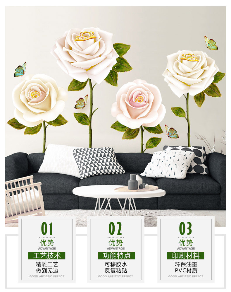小清新花朵沙发背景墙贴客厅卧室床头装饰墙面壁纸自粘墙纸墙贴画