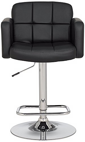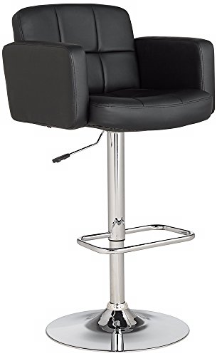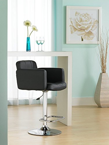 -. Feature : Black adjustable bar stool. / Larger size seat and base. / Hand-crafted tufted detailing. / Faux leather. / Chrome finished metal.
