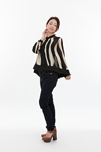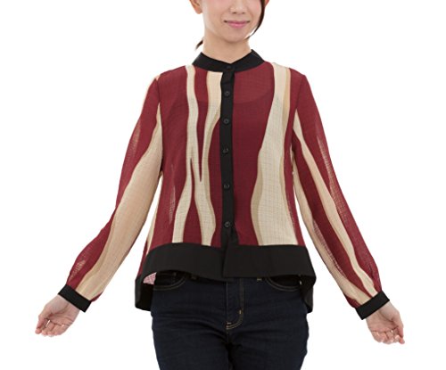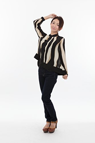 -. Title : (ハッピーホヌ) Happy Honu ダンス 衣装 ちび衿 シャツ ストライプブラウス カジュアル 裾フレアー シースルー 長袖 ブラウス レディース